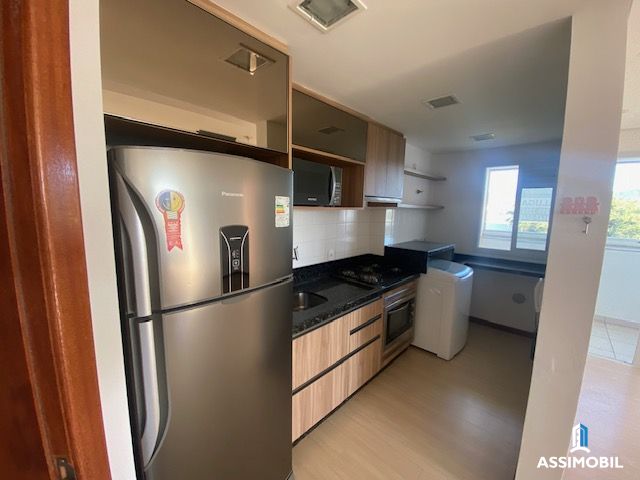 Apartamento semi-mobiliado 2 dormitórios, 61 m² privativos, sala de estar/jantar, cozinha, 1 banheiro, área de serviço, sacada com churrasqueira, 1 vaga de garagem. Edifício com elevador, salão de festas, piscina, hall de entrada, playground, quadra poliesportiva, churrasqueira, interfone, segurança.