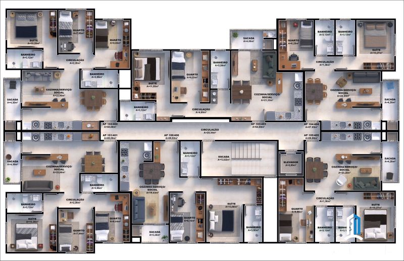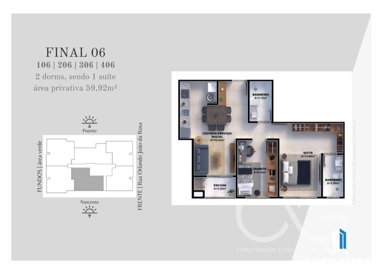 - Apartamento 2 dormitórios sendo 1 suíte, 70 m² de área privativa.
