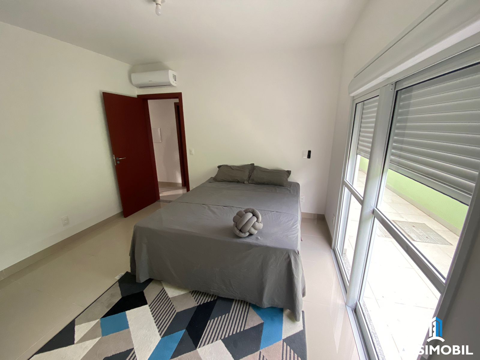 Apartamento semi-mobiliado 3 dormitórios sendo 2 suítes, amplo com 100 m² privativos e 147m² de área total, sala de estar / jantar, sacada com espaço garden e churrasqueira à carvão, cozinha, banheiro social, 1 vaga de garagem. Ficam no apartamento todos os móveis e eletrodomésticos (camas, mesa, sofa, armários, forno, geladeira, ar-condicionado) Edifício com hall de entrada, salão de festas, churrasqueira, jardim e espaço gourmet.