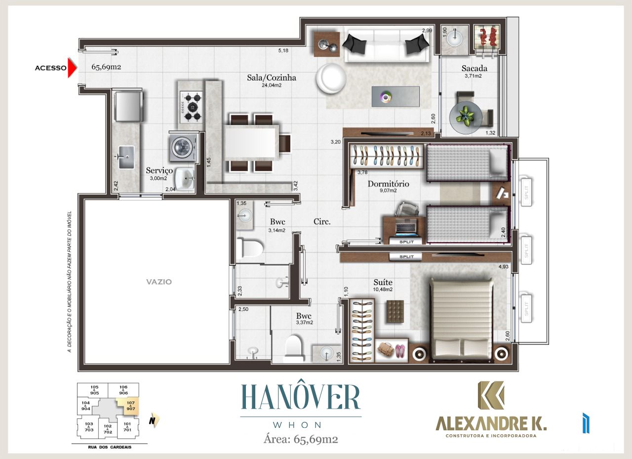 - 65,69 m² (área privativa interna)