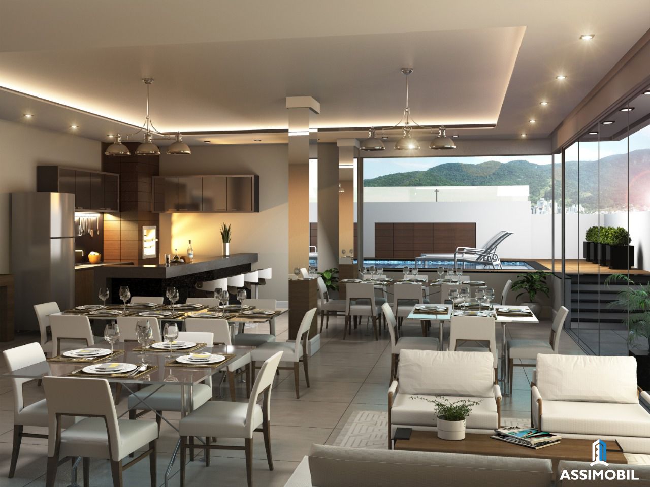 - Salão de festas com espaço gourmet mobiliado e decorado