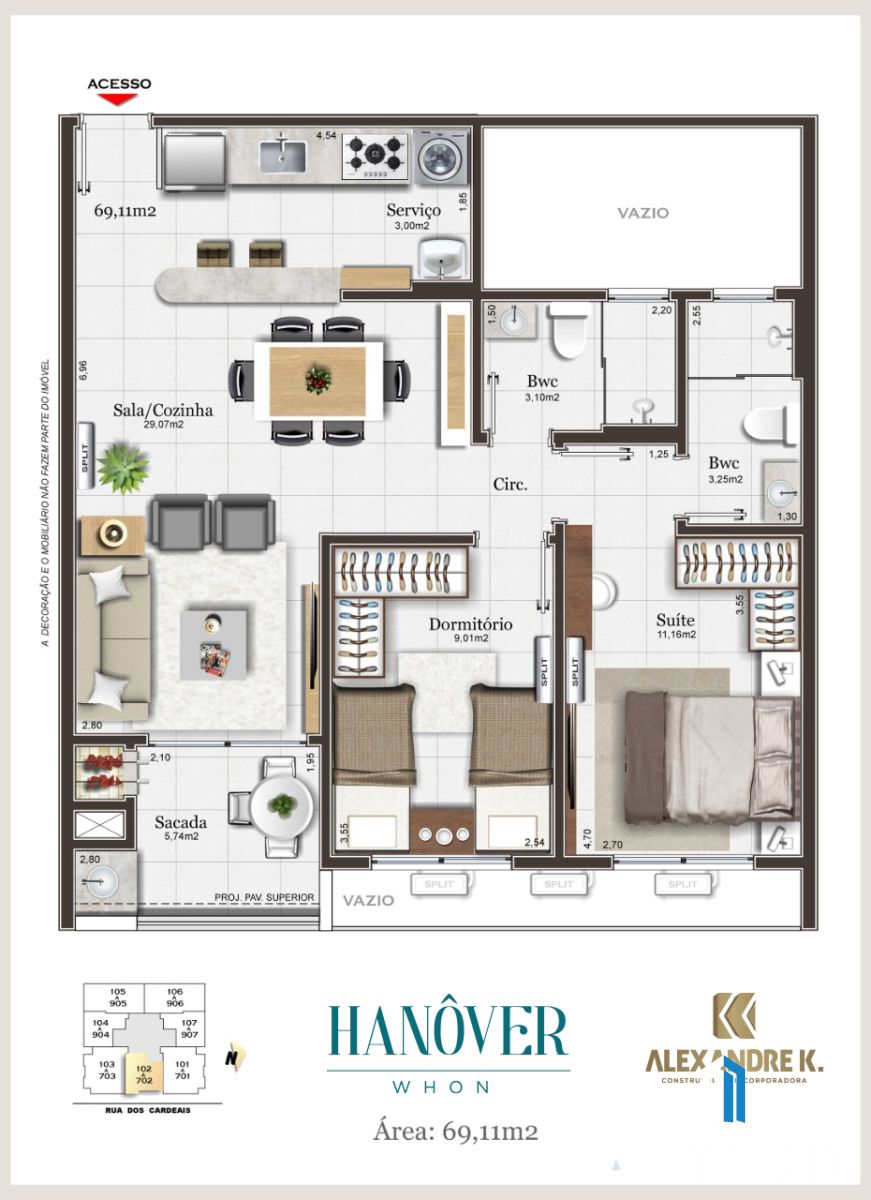 - 69 m² (área privativa)