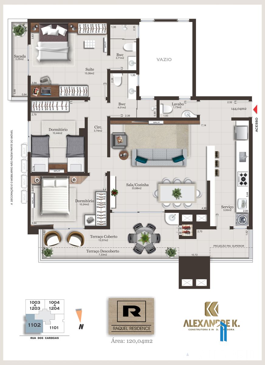 Apartamento com terraço 3 dormitórios sendo 1 suíte, 120,04 m² privativos, sacada com churrasqueira à carvão, sala estar/jantar, cozinha, área de serviço, garagem. Imagine viver em um lugar onde cada detalhe foi pensado para atender às suas necessidades. No Raquel Residence, oferecemos um estilo de vida elevado. Desde as áreas de lazer inspiradoras até a localização privilegiada, cada aspecto foi concebido para proporcionar a você e à sua família o máximo em conforto e conveniência. Os detalhes fazem toda a diferença, o acabamento é de alto padrão, os materiais de primeira linha estão presentes em cada canto dos apartamentos, tornando-os exclusivos e expressão de bom gosto, criando um ambiente único como você merece. Seu projeto foi desenvolvido para proporcionar bem-estar nos espaços de convivência que oferecem uma estrutura perfeita e completa para se reunir com a família e amigos para relaxar, descansar e aproveitar a vida com muito mais qualidade. Previsão de entrega 2º semestre 2026 *** OFERECEMOS EXCELENTES Condições de Pagamento: *** >> ENTRADA DE 10% E O RESTANTE FINANCIADO pela CEF (COM GARANTIA DE ENTREGA DE OBRA E ESCRITURA) << *** Consulte nossos Corretores ao lado do empreendimento ***