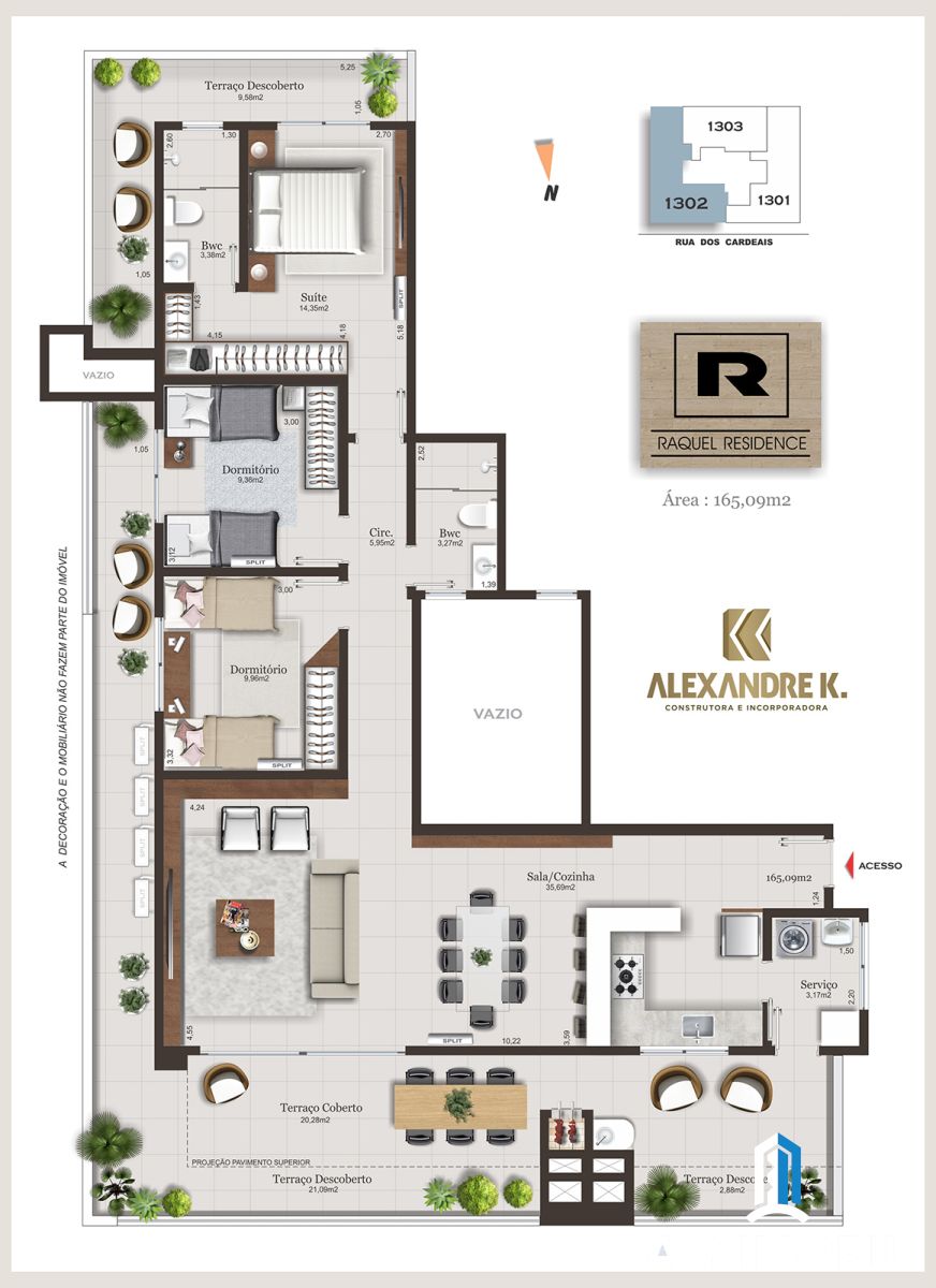- 165,09 m² (área privativa interna)