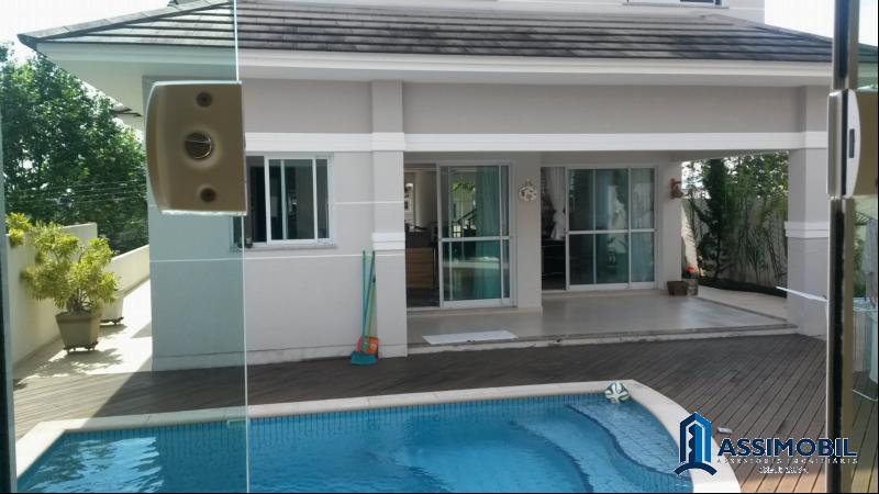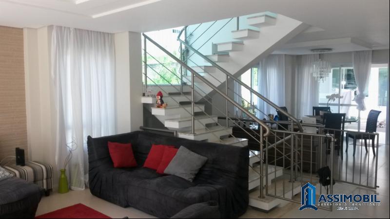 Casa Alto Padrão, 5 dormitórios sendo 2 suítes, 400 m² privativos; 3 andares, aconchegante e moderna. Imóvel com ampla sala de estar, jantar, estar íntimo, lavabo, cozinha, móveis planejados em todos ambientes, papel de parede, amplo espaço gourmet com forno à lenha, separado da casa e junto á piscina, home teather, garagem para 2 carros, varandas. Excelente localização; à 100 m do Passeio Pedra Branca, no melhor Bairro da Grande Florianópolis. Bairro nobre com estrutura de condomínio, ruas asfaltadas, lagos, praças, universidades, escola, Hippo S., ampla gastronomia, segurança. Este imóvel está muito bem localizado à poucos minutos do Continente Park Shopping e à apenas 15 km do centro de Florianópolis. No bairro Pedra Branca, bairro referência nacional em qualidade de vida.