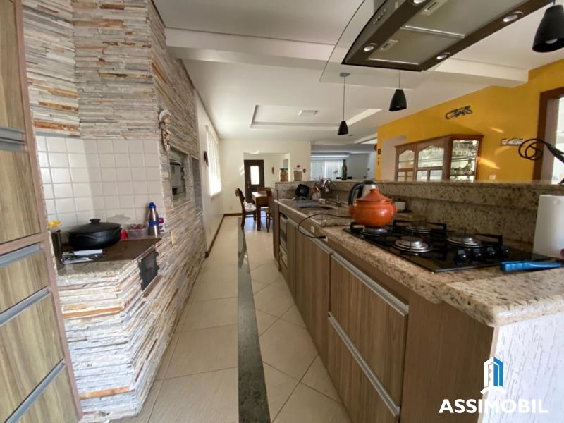 Casa c/ 3 dormitórios sendo 1 suíte, área privativa 320 m², área total de 397 m²,3 pavimentos, sala de estar, sala de janta, varanda c/ churrasqueira e espaço gourmet, cozinha, banheiro social, escritório, área de serviço, piscina, 3 vagas de garagem. A casa conta com placas de energia solar, linda mobília na cozinha. Excelente localização, próximo a escolas e supermercado.